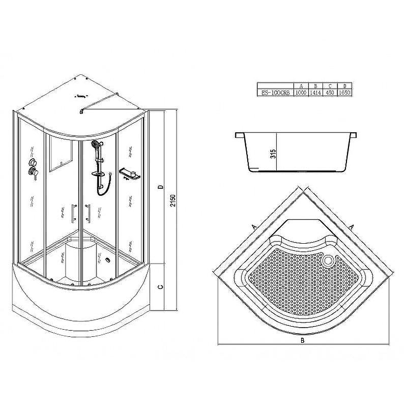 Душевая кабина Esbano ES-100CRB 100x100 ESKB100CRB.