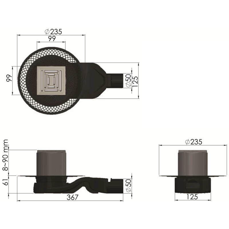- Самопромывной S-образный сифон РР: горизонтальный выпуск S-сифон D50 мм, Н60 мм, регулировка по высоте, монтаж 360.