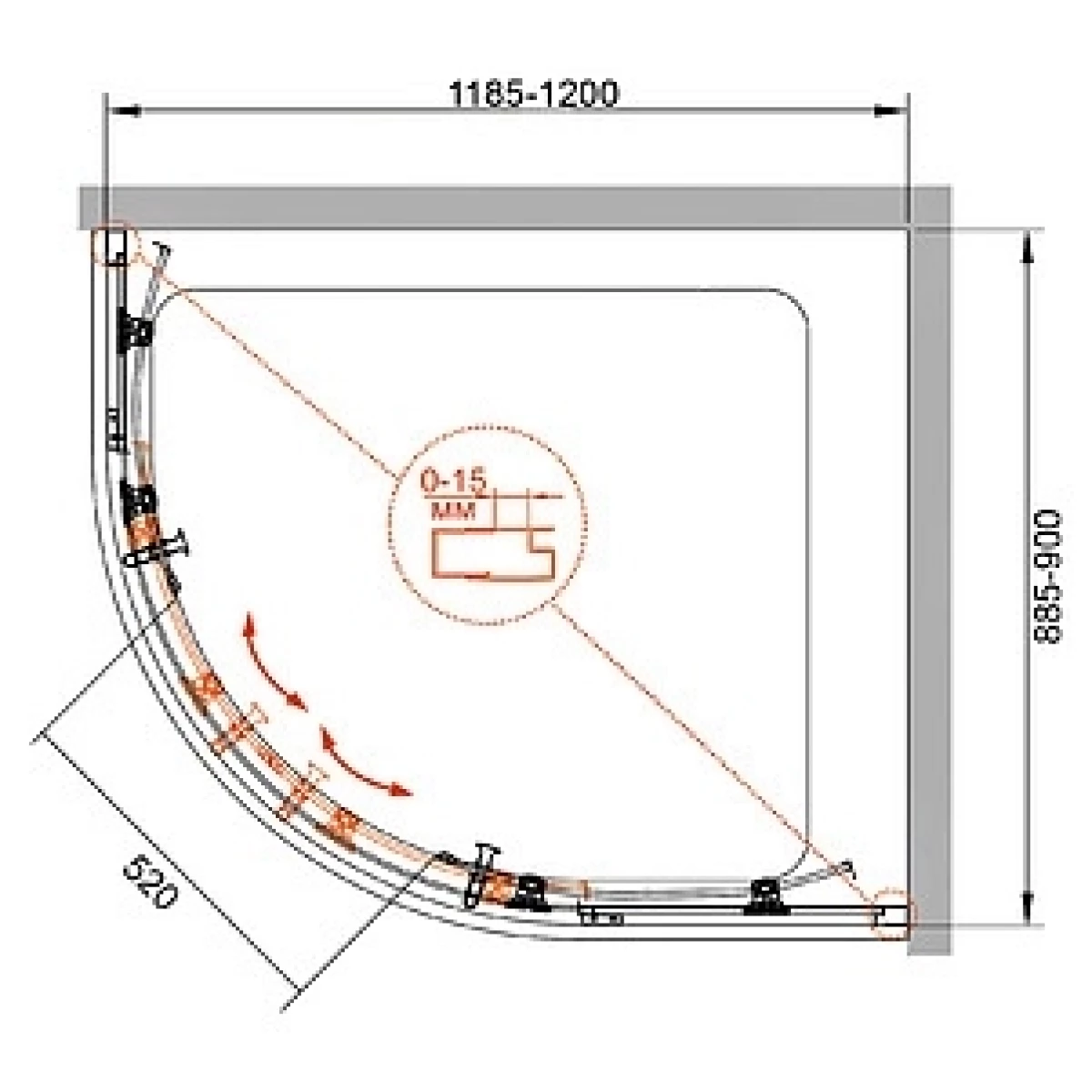 Радиальный ассиметричный душевой уголок Cezares Eco 120x90 ECO-O-RH-2-120/90-C-Cr с двумя раздвижными дверьми.