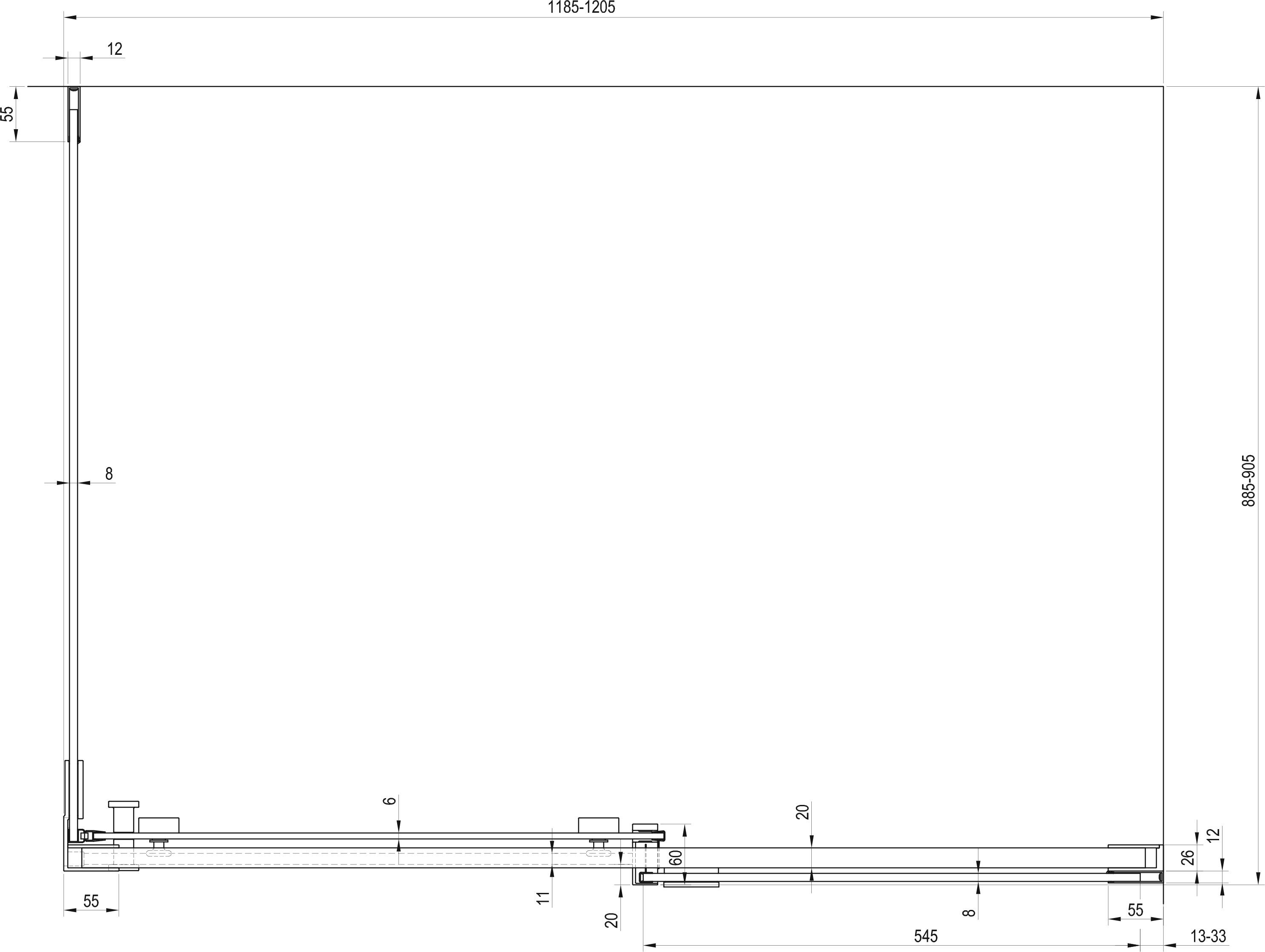 - Регулировочные размеры: 1185-1205x885-905 мм.