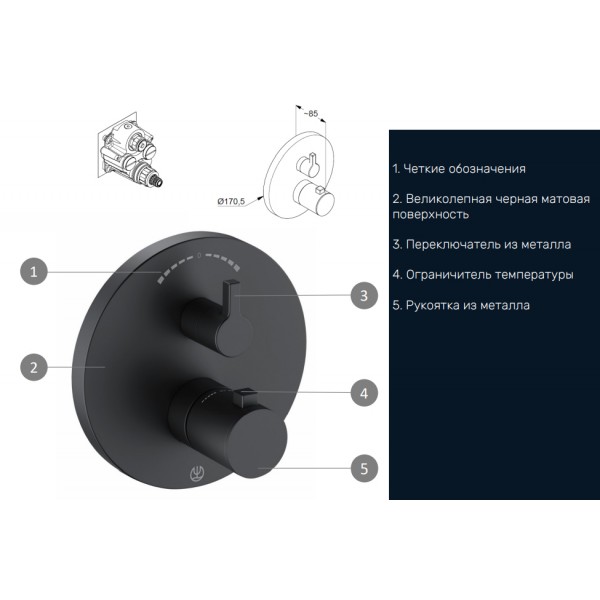 - Количество режимов струи верхнего душа: 1 (бодрящая)