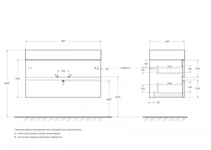 - Монтаж: подвесной.