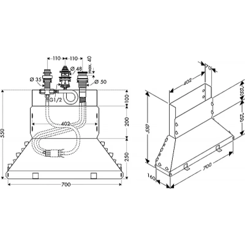 Скрытая часть смесителя для ванны на 3 отверстия Hansgrohe