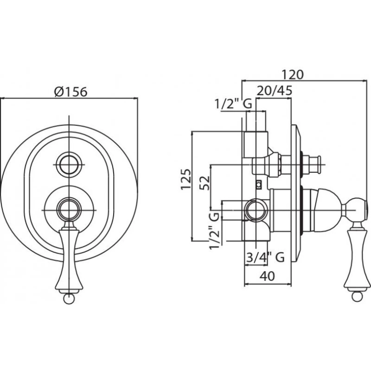 Настенный смеситель для душа Cezares Margot MARGOT-VDIM-03/24-Bi на два потока воды, однорычажный, встраиваемый в одно отверстие.