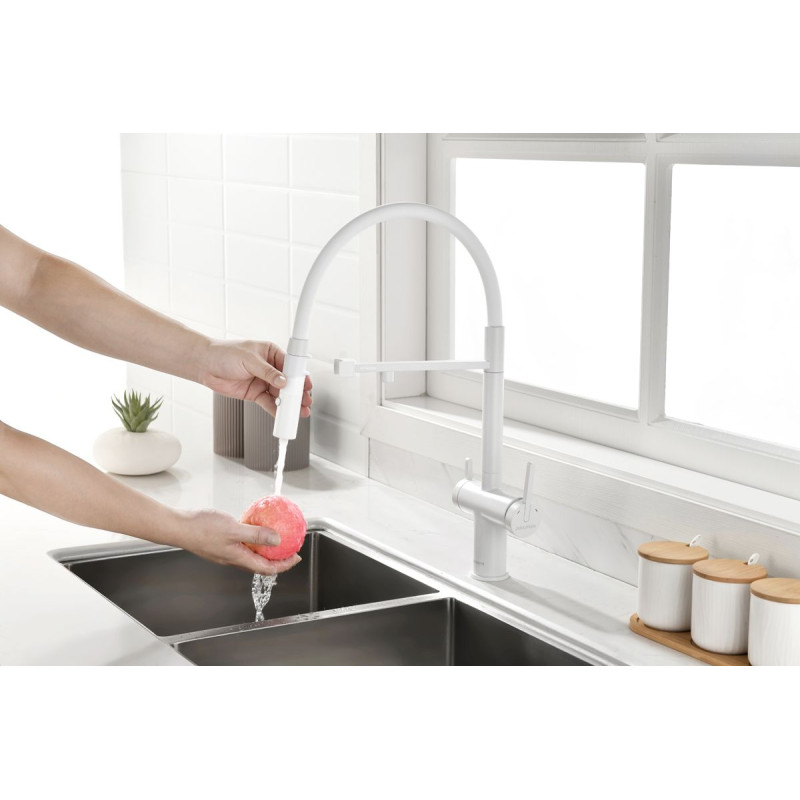 - Гибкий излив из силикона обеспечивает оптимальный диапазон движения, 360 градусов.