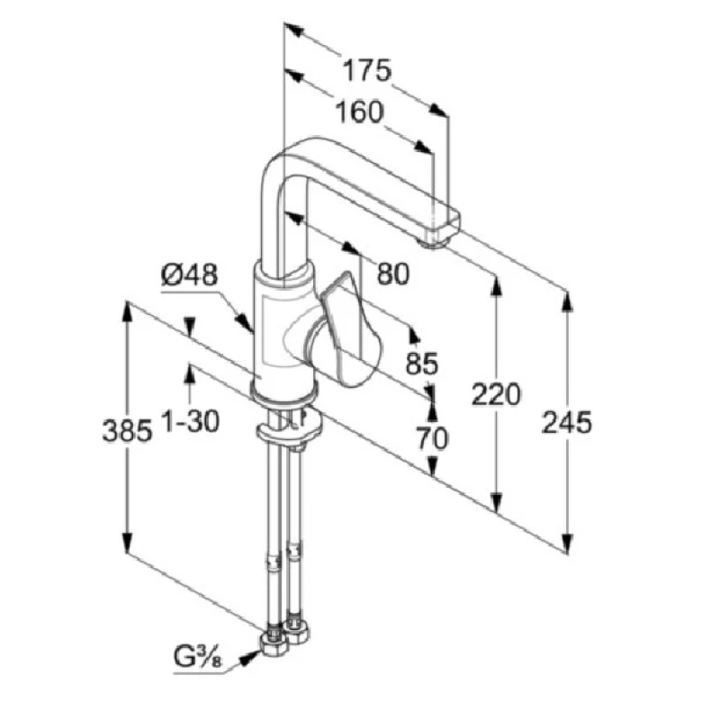 Смеситель для раковины без донного клапана Kludi Bozz 382865376