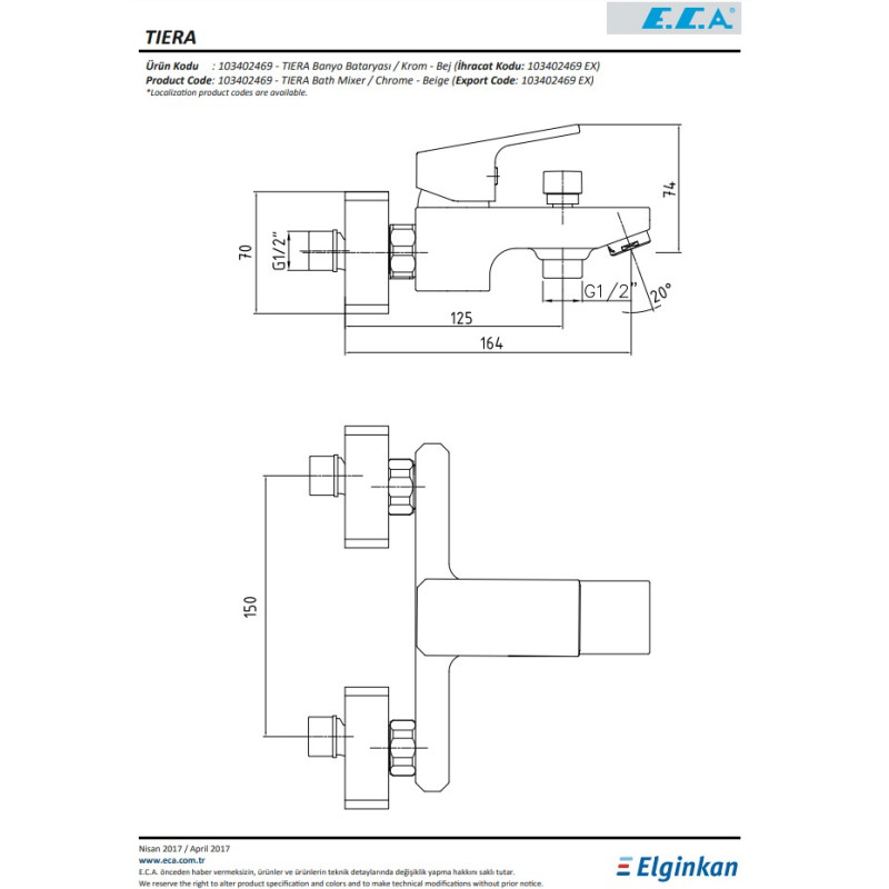 Смеситель для ванны E.C.A Star 102101140EX