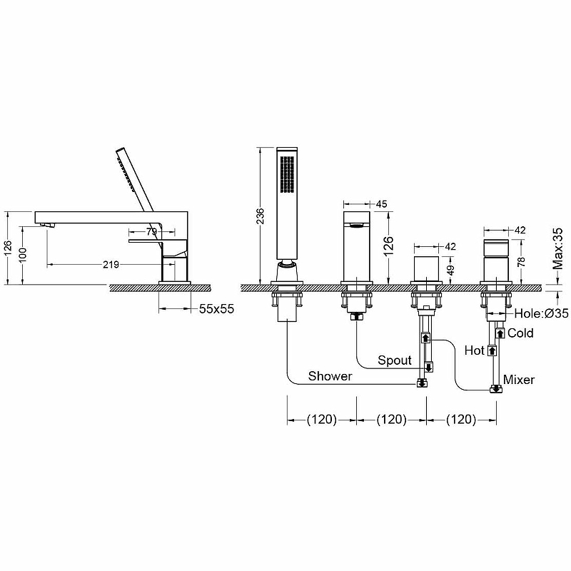 Смеситель на борт ванны Aquatek Либра AQ1648CR с душевым гарнитуром.