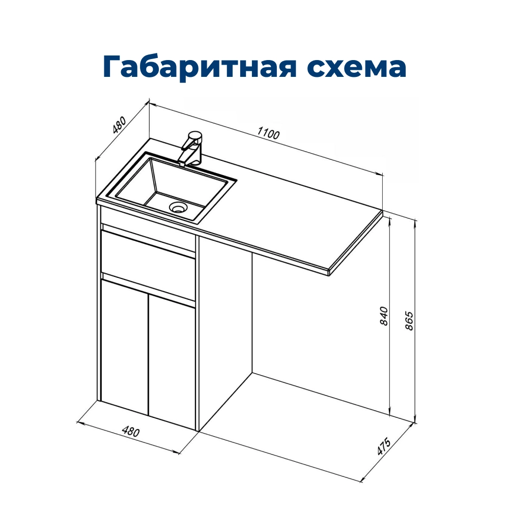 - Система хранения: 2 распашные дверцы и 1 выдвижной ящик.