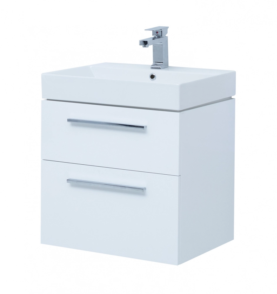 Тумба под раковину Aquanet Nova 60 см подвесная, 2 ящика, белый глянцевый, 242279