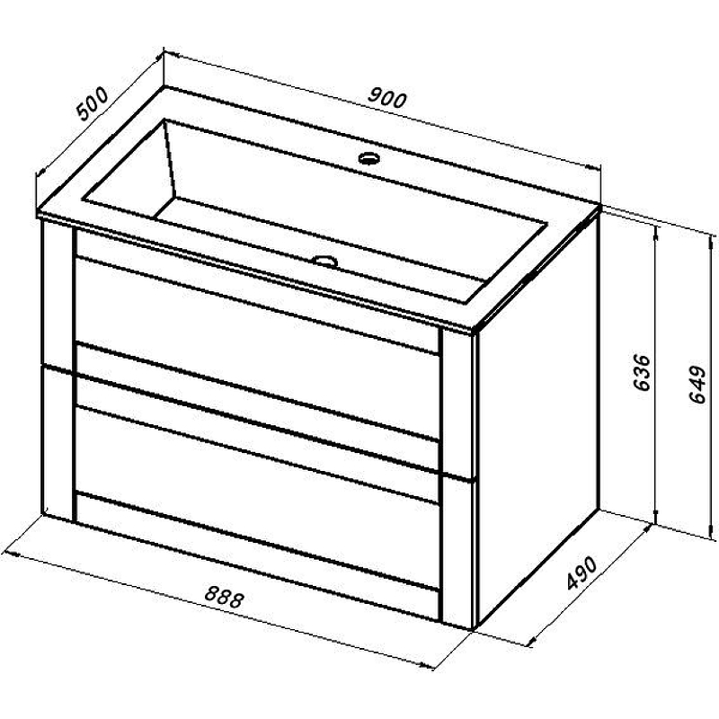 - Габариты корпуса тумбы (ШxВxГ): 888х636х490.