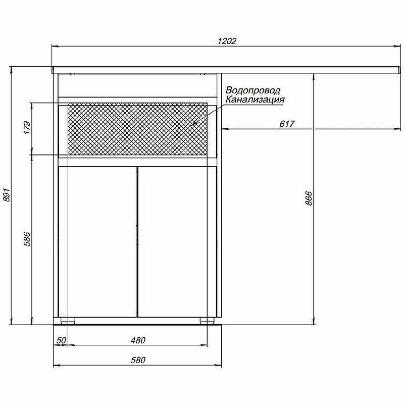- Габариты тумбы (ШхВхД): 58x84x47,5 см.
