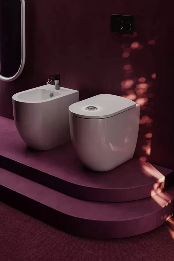 Коллекция построена на созвучии форм унитаза и биде: компактные, плавные контуры, безупречно гладкие поверхности и тонкие, выверенные детали. Особое внимание привлекает новое сиденье унитаза с петлями, развёрнутыми на 180° назад — именно оно добавляет характеру и делает силуэт узнаваемым благодаря «печеньковой» линии профиля.